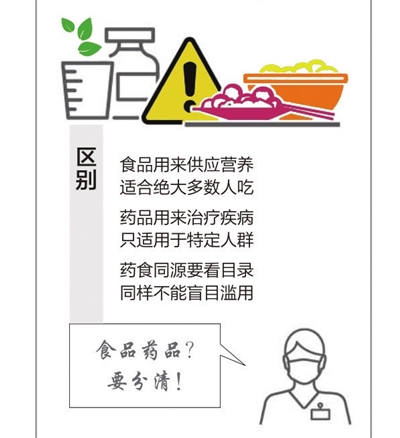 “药材、药食兼用食材和普通食品的基本特性不同,使用对象不同,安全性也不同。”中国农业大学食品科学与营养工程学院副教授范志红谈道,食品用来供应营养,提供感官愉悦,适合绝大多数人食用;药品用来治疗疾病,不求营养和美味,只适用于需要它的某些疾病状况或特定体质的人。所谓“是药三分毒”,药品仅对部分患者的治疗有益,还有严格的数量限制,对另外一部分人,则可能带来不良作用,扰乱代谢平衡。药食兼用食材居于两者中间,即便能吃,吃的量也是有限制的。