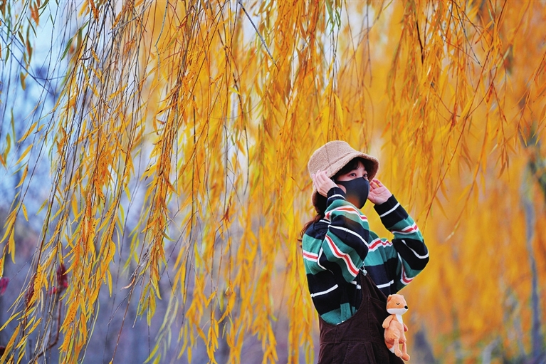 11月16日,省城街道和公园的树木,在冬日暖阳下舞动着一抹绚烂。行人行走其间,一幅美丽的生态图画令人心醉。 记者 邓寅明 摄
