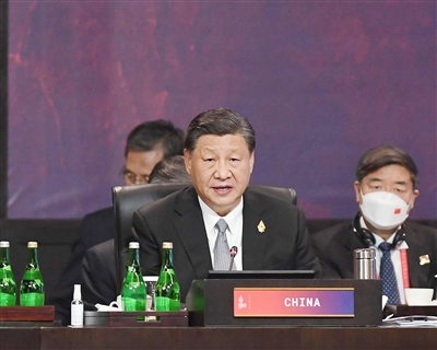 当地时间11月15日晚,习近平和夫人彭丽媛出席印度尼西亚总统佐科和夫人伊莉亚娜在巴厘岛神鹰广场举行的二十国集团领导人峰会欢迎晚宴。