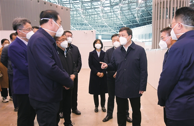 利用晋阳湖国际会展中心改造而成的方舱医院,共设置床位2500张。韦韬来到这里,结合展板了解方舱医院设计建设、运行准备情况,认真询问管理运行模式、后勤服务保障、隔离带设置等工作,并实地察看功能布局、硬件设施和生活用品配备,强调要进一步细化完善方舱医院运行全流程工作方案,统筹做好医疗救治、污废处理、隔离防护、物资储备等工作,组建一流医护队伍,加大后备队伍梯次培训力度,全力服务我市疫情防控大局。