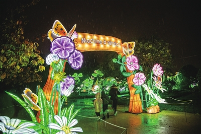 11月16日,在法国巴黎自然历史博物馆外,人们参观“迷你世界灯光展”。灯光展将从11月14日持续到2023年1月15日。 新华社 发