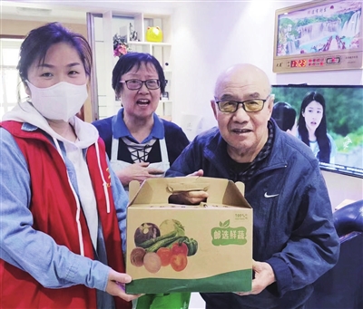 疫情防控期间,“圆梦人”为出行不便的老人送菜上门,解决了老人们的生活所需,“一人一包蔬菜,志愿者们为100多户老人送上满满的温暖。”