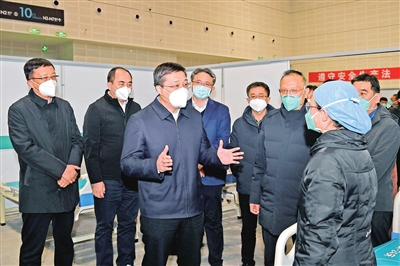省委常委、市委书记韦韬在潇河国际会展中心方舱医院督导检查疫情防控工作。 贾鹏 摄