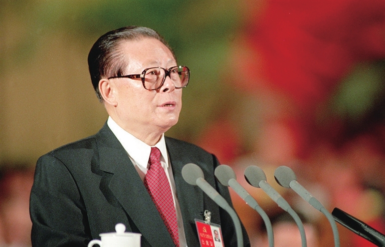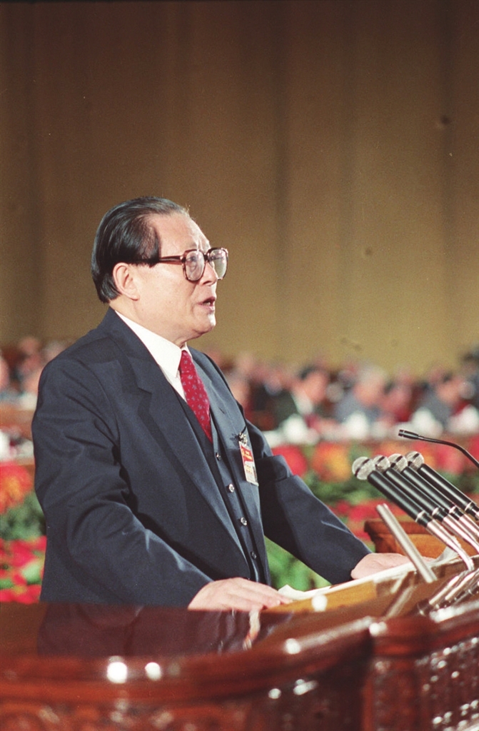 | 1997年9月12日,中国共产党第十五次全国代表大会在北京人民大会堂开幕。这是江泽民同志代表第十四届中央委员会作报告。 |