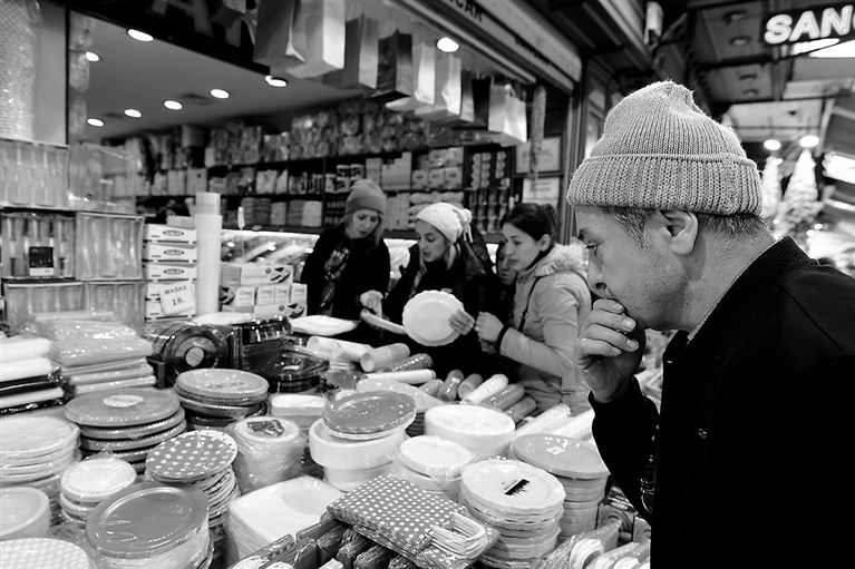 12月5日,人们在土耳其伊斯坦布尔一处集市购物。