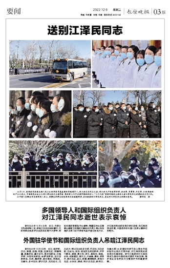 习近平等党和国家领导同志到医院为江泽民同志送别并护送遗体到八宝山火化