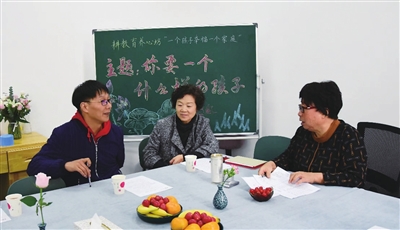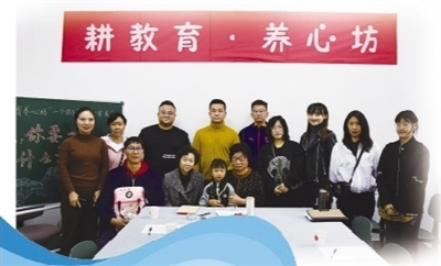 每个周三和周五的15时,“校长奶奶”詹文龄都会准时出现在山西通宝育杰学校图书馆的一间教室里,与家长们畅聊家庭教育中的困惑、经验。十几个人围坐在一起,彼此倾听,相互抱持,滋养心灵,这就是“耕教育·养心坊”。