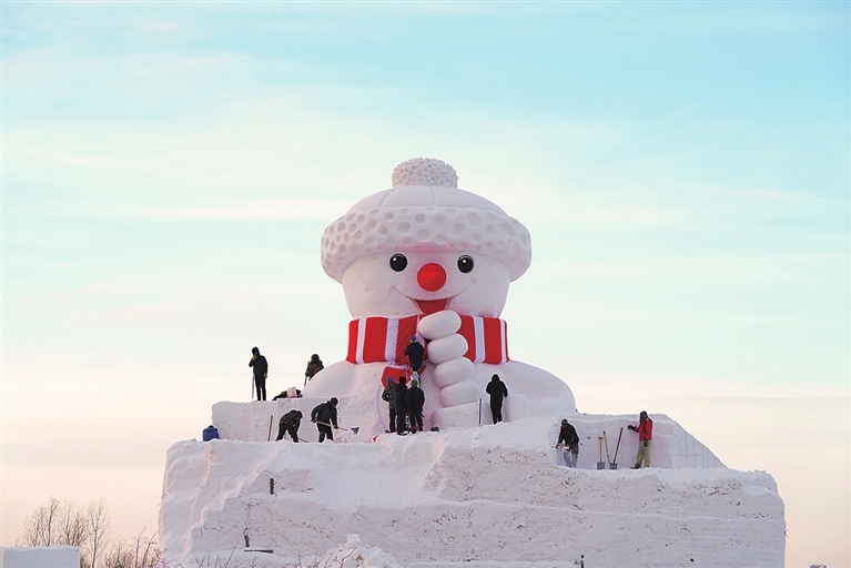 目前,一座正在搭建的巨型雪人在松花江哈尔滨段江畔“亮相”。记者从哈尔滨市园林部门了解到,这座大雪人设计总长13米、宽10米、高18米,计划用雪量为2000立方米,造型可爱、憨态可掬的“治愈系”大雪人将于不久后完工。
