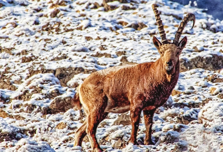 进入12月以来,大批野生北山羊在新疆昭苏县阿合牙孜冬牧场内觅食,每年冬季一群群北山羊都会下山寻找食物,它们成群结队,有的在低头觅食,有的在抬头观望。近年来,昭苏县采取多种措施加强野生动物保护,使野生动物的生存环境得以改善,种群数量上升。随着农牧民动物保护意识不断增强,加之草畜平衡工程让草场得以恢复,野生动物保护成效显现。中新社 发