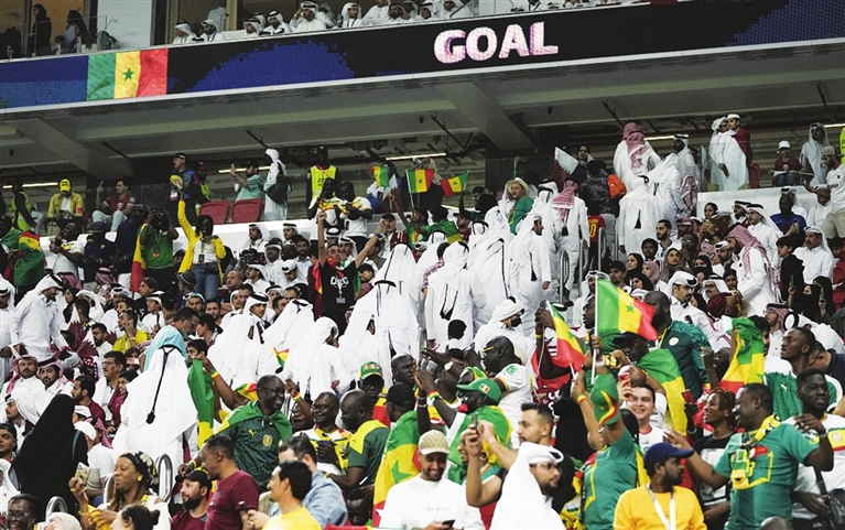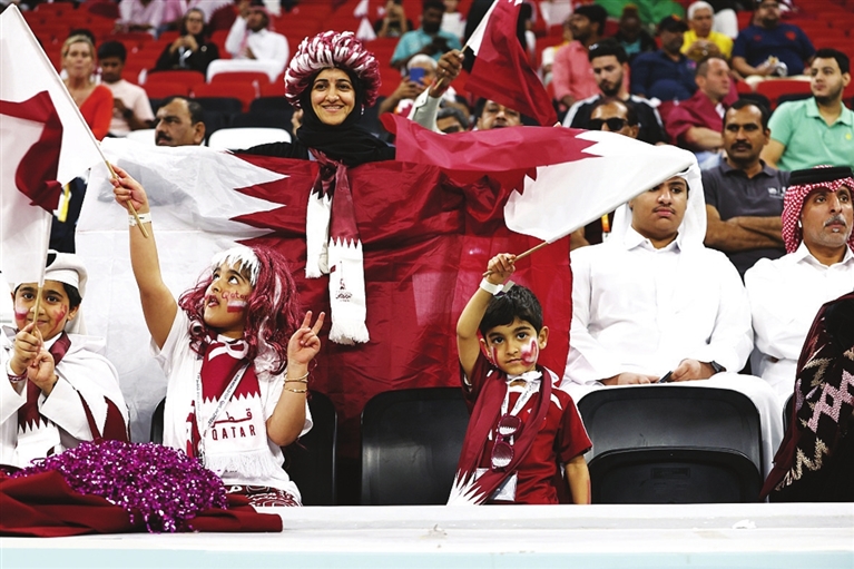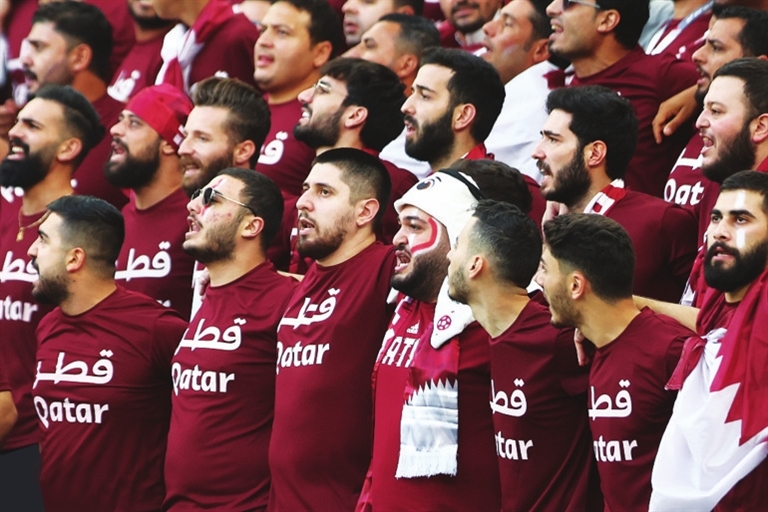 事实证明,“钞能力”足够有效,阿费夫们在三场小组赛深切感受到了“第12人”的气势磅礴——一个多达1500人的卡塔尔死忠球迷方阵,在海湾体育场和图马马体育场夺人眼球。