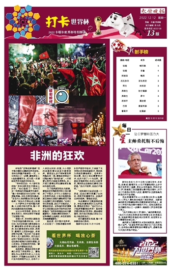 | 太原晚报 打卡世界杯 2022卡塔尔世界杯特别报道 13 2022-12-121 2022年12月12日 星期一 |