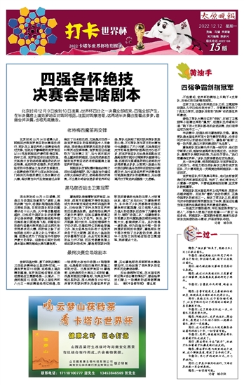 | 太原晚报 打卡世界杯 2022卡塔尔世界杯特别报道 15 2022-12-121 2022年12月12日 星期一 |