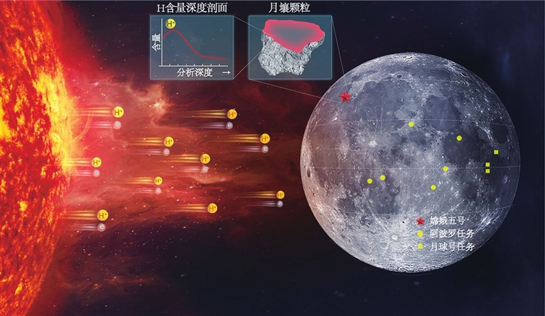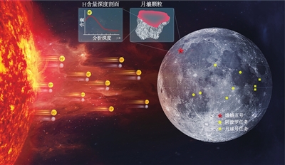 “从太阳发射出的氢离子平均速度达到每秒450公里,它们就像子弹一样打入月壤颗粒的表层。”论文共同第一作者、地质与地球物理所副研究员田恒次说。