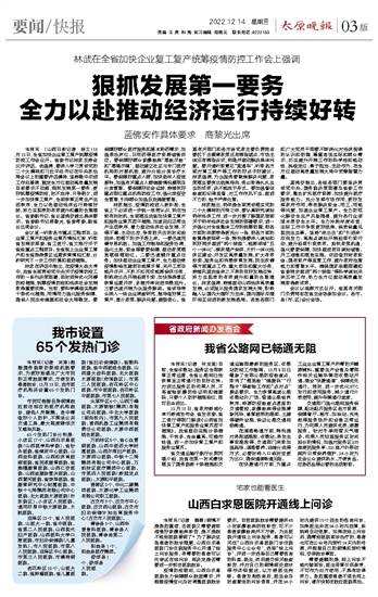 | 太原晚报 要闻快报 03 2022-12-141 2022年12月14日 星期三 |