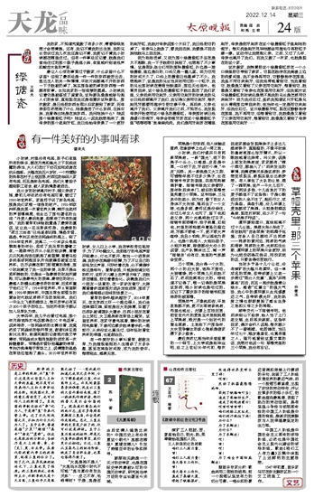 | 太原晚报 天龙品味 24 2022-12-141 2022年12月14日 星期三 |