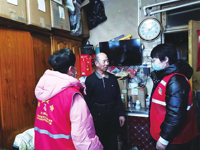 当天上午,社区党委书记岳柱清带着社区干部、网格员来到和平北路北巷8号院,看望了空巢老人刘力健。刘大爷年已七旬,行动不便,常年一个人居住,社区一直关注老人生活,前不久老人着急办理爱心卡,网格员及时入户,帮他解决了难题。当天,大家给刘大爷送去一些防疫物品,反复叮嘱老人注意用电用火安全,同时叮嘱老人,可以到卫生服务站享受免费体检服务。临走时,大家给刘大爷留下联系方式,嘱咐老人有困难及时和他们联系。刘大爷非常感动:“这几年来,街道和社区一直关心帮助我,太感谢了!”