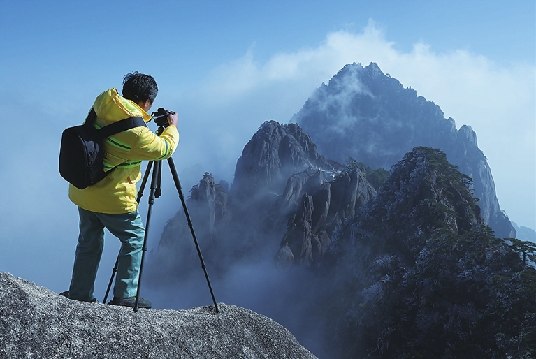 在黄山之巅,还有不少像胡晓春和李培生这样的工作人员,在平凡岗位上守护黄山之美,用镜头定格黄山的诗意风景。 新华社 发