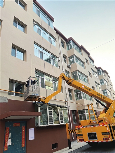 楼道粉刷、更换楼道内灯、路面铺设及管道改造、更换窗户、外墙保温、绿化带整理、车棚修建、电缆入地、安装监控……改造有条不紊地进行。