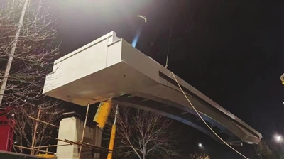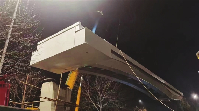 永乐北街人行天桥项目由山西建投潇河公司承建,位于滨河西路胜利桥与漪汾桥之间,建成后主要用于连通住宅区和汾河景区。项目主桥采用两跨变截面连续钢箱梁桥,主桥总长52.2米,主桥用钢量约120吨,加上楼梯、坡道、钢柱等,总重量约360吨。人行天桥梁底采用圆弧线,整体为门式造型,线形优美大方。