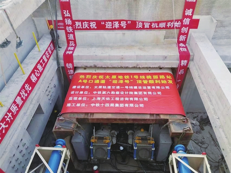这种施工,是将事先预制好的矩形通道,从迎泽大街与桃园路交叉口的东北角向东南角顶进。这些通道,每一节都是4.9米高、6.9米宽,顶进的同时可实现拼装。由于施工区域属于富水液化粉细砂地质,土质的流动性大,给施工带来了极大的施工难度。对此,施工前采取了水平注浆、旋喷桩等举措确保安全。这处矩形顶管通道施工将在2023年春节前实现贯通。