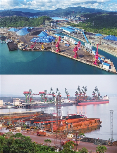 上图:这是2016年9月23日在印度尼西亚中苏拉威西省拍摄的青山工业园自备码头。