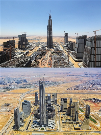 埃及新行政首都中央商务区项目位于现首都开罗以东约50公里处,总占地面积约50.5万平方米,包含20个高层建筑单体及配套市政工程。其中最引人注目的是“标志塔”项目,塔冠最高点385.8米,被誉为“非洲第一高楼”。目前,中央商务区项目已完成全部20栋楼的主体结构和外装工程施工,全面进入装饰装修和机电安装阶段。