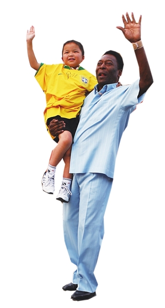 当年8月23日,贝利在故宫与十余名来自四川地震灾区的小朋友共同分享奥运带来的喜悦,其中包括在汶川地震中勇救同学的小英雄林浩。贝利拿出一件巴西足球队10号球衣,认真地在胸口位置签名后套在林浩身上。