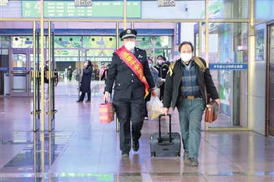 晚上8时,人流量开始减少,喧闹的车站逐渐安静下来。由于一整天都没怎么休息,王澳、李曼、李超等铁警们走路的样子已显疲态,当记者对他们说“辛苦了”的时候,李超摘下帽子笑了笑:“春运就是这样的,我们习惯了。”