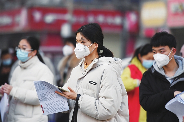 1月7日-8日,中央机关及其直属机构2023年度考试录用公务员笔试举行。这是1月8日,在安徽省阜阳市颍州中学考点,考生入场参加公共科目笔试。 新华社 发