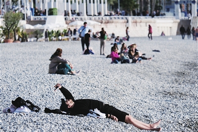 这是1月3日,人们在法国南部城市尼斯的海边休闲。新年初始,欧洲多地迎来反常高温天气。 新华社 发