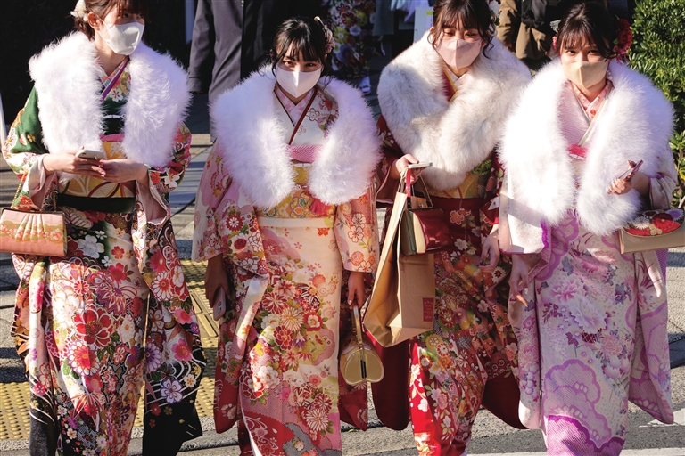 当日,青年男女在日本横滨参加成人礼,庆祝自己成年。根据日本自2022年4月1日开始施行的《民法》,成人年龄由原来的20岁下调至18岁。每年1月的第二个星期一,日本各地会为年轻人举办成人礼仪式和活动。 新华社 发
