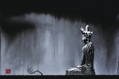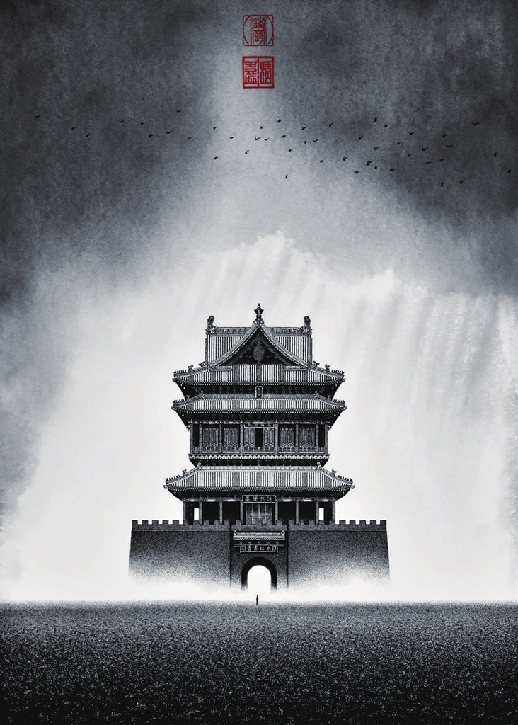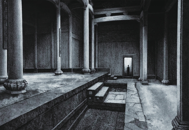 “画古建筑,我不喜欢将古建筑画得像是一个景点,那样就脱离了建筑本身,我的画中都是把古建筑单纯地展现出来,通过背景与细节的刻画来营造氛围。”