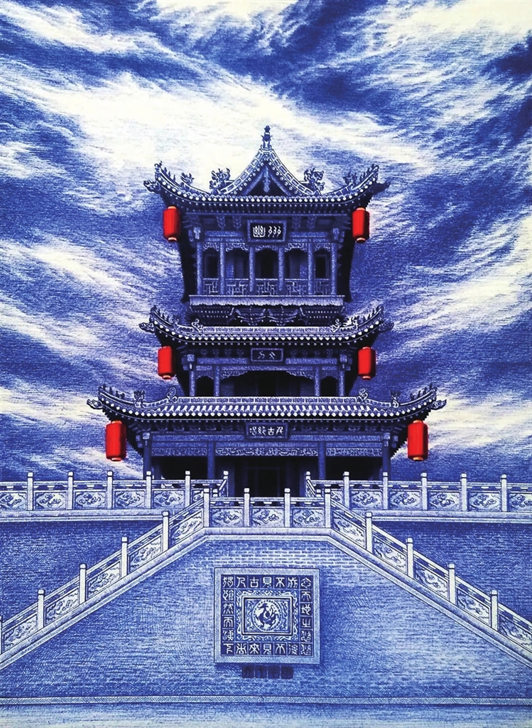 最初的灵感其实来源于课本涂鸦。“小学的时候都喜欢课本涂鸦,没事就随手画两下,毕竟那时候没有专业画笔,手边最常见的就是圆珠笔。”结果诸葛清嘉发现,圆珠笔出来的效果还不错,自带的蓝色有一种深邃的神秘感,很适合来画古建筑,于是就创作了大量的圆珠笔画作。