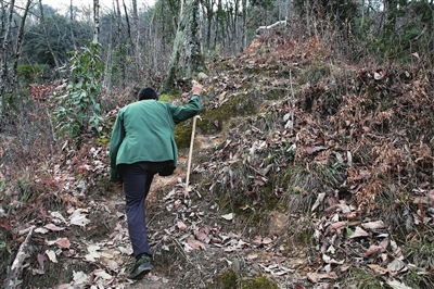 杨忠录在大熊猫国家公园甘肃省片区裕河园区的密林中巡山(1月4日摄)。