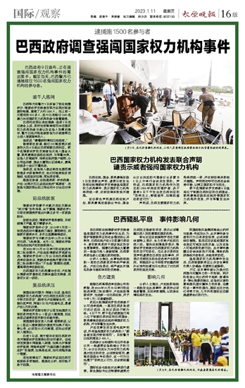 巴西国家权力机构发表联合声明谴责示威者强闯国家权力机构