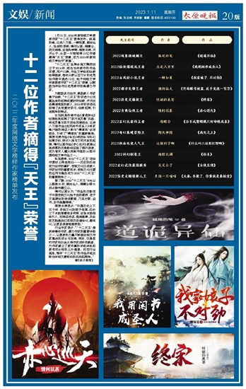二〇二二年度网络文学榜样作家榜单发布~~~