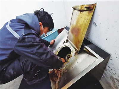 “大哥,开水烧好了吗?”说话间,康瑞峰已迅速将油烟机的止逆阀、涡轮、滤网放入一个长方形的箱子里,范先生将烧好的一大锅开水倒入箱内。范先生说,每年过年,像康瑞峰这样的专业人员非常抢手,需要提前几天预约。尽管费用比街头“打游击”的稍微贵些,但是洗得放心。