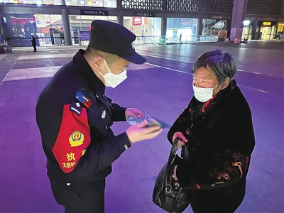 日前,一位七旬老人来到太原南站,准备乘火车回老家时发现身上带的钱不够买车票。太原南站派出所民警得知情况后,主动购买了车票和食物,护送老人上车入座。 马向敏 摄
