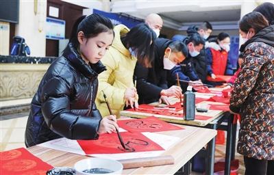 1月13日,小店区恒大绿洲社区举办写春联送祝福活动。广大居民在红纸上挥毫泼墨,洋溢着欢乐喜庆的节日氛围。 阴钰奇 摄