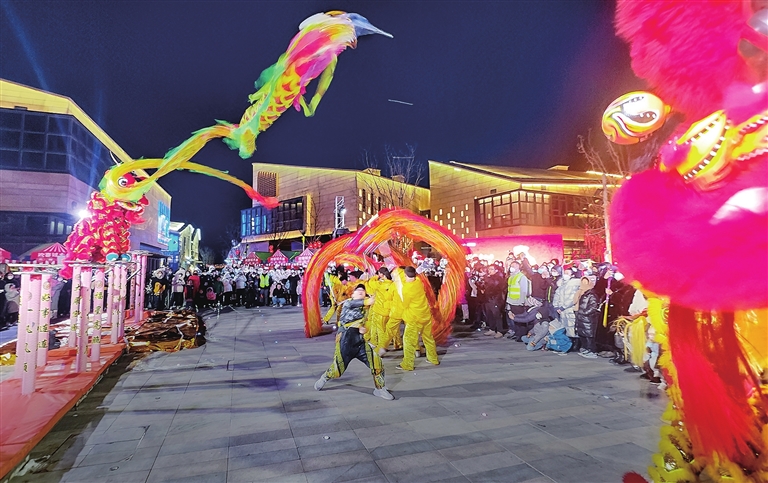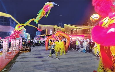 1月14日晚,晋阳湖公园内,舞龙、舞狮、打铁花、锣鼓等表演给市民的小年夜带来了浓浓年味儿。 王韵菲 摄