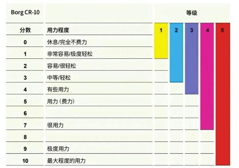 运动要科学规划,不要突然进行大量运动。康复医学科常会用一个“RPE指标”,也就是“自我感觉疲劳量表”(见下图)。