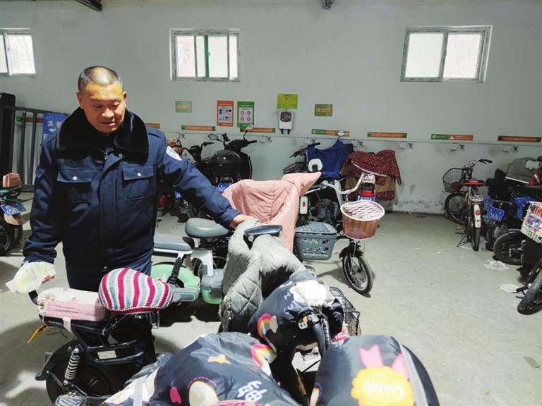 小区的居民胡大爷有晨练的习惯。每天出门路过停车棚,都能见到赵瑞起在车棚里搬着一辆辆电动车。有些人头一天回来晚,没地方了,直接就把车子横在过道里,挡了路。他要趁着车主出门前,把车子一辆辆重新规范停好。
