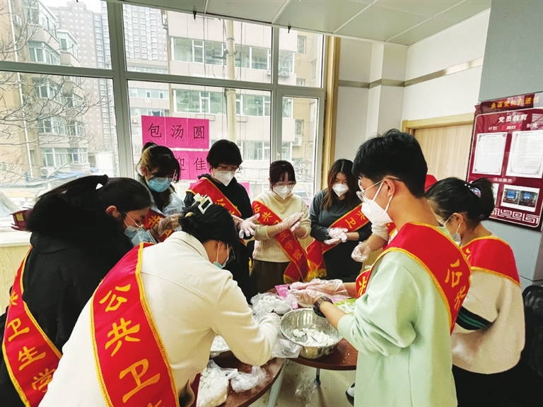包汤圆、品年味、庆团圆。新春佳节到来之际,山西医科大学公共卫生学院的大学生志愿者前往迎泽街道解放南路二社区开展志愿服务。大家分工合作包汤圆,有的揉糯米粉,有的包馅,欢声笑语不绝于耳。志愿者将包好的汤圆分装送给居民,将祝福送给大家。 侯慧琴 周渺 摄