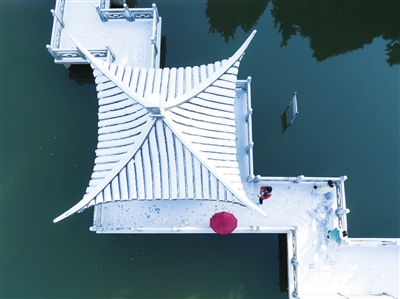 1月15日拍摄的江苏省扬州市个园景区雪景(无人机照片)。