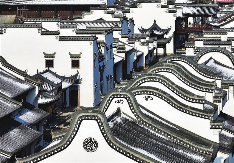 1月16日拍摄的湖北省孝感市云梦县祥云湾古建筑群雪后景色(无人机照片)。