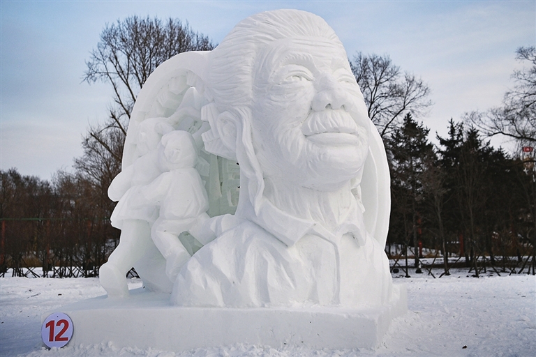 1月18日拍摄的第二十九届全国雪雕比赛一等奖作品《期盼》。