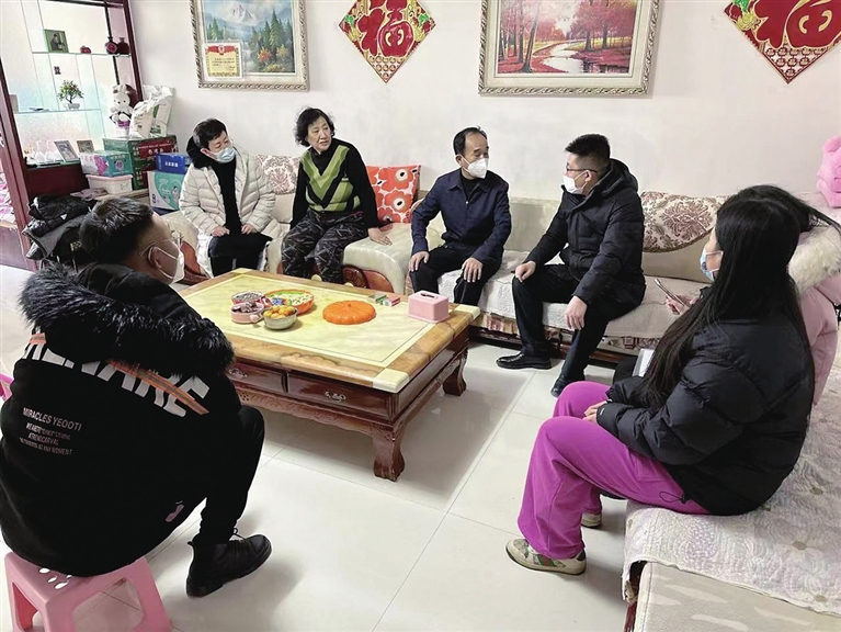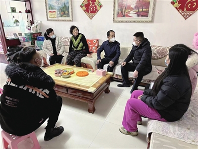 1月18日,平阳路街道平阳景苑社区开展“情系边海防官兵”春节专项慰问活动,来到战士们的家,大家详细询问了其家人的生活情况、健康情况、看病就医等问题,耐心倾听他们的诉求,并为他们送上米面油等慰问品,表达了党和政府对边海防官兵的关怀。 周利芳 郑敏 摄