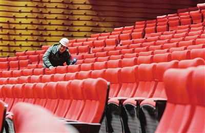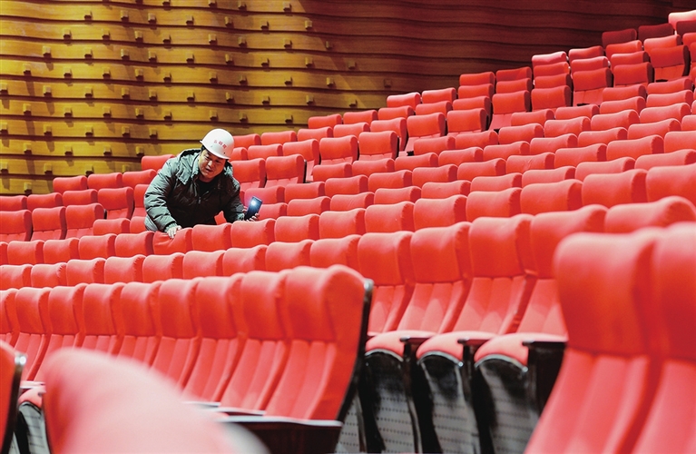 1月19日,位于新建南路的丁果仙大剧院改造项目现场,施工人员正在进行收尾作业。改造完成后的剧院,将成为省城又一文化服务亮点。 牛利敏 宋卫东 摄