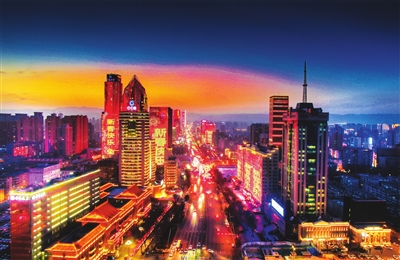 1月21日傍晚,迎泽大街流光溢彩,城市的活力被新春主题灯光秀点燃,市民感受着温馨祥和的节日喜庆。 记者 韩双喜 摄