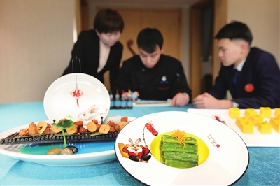 春节期间,我市许多餐饮单位推出个性鲜明的节日菜品,为食客带来别样的体验。图为1月26日,北大街某餐厅推出的果酱画菜品。 牛利敏 宋卫东 摄
